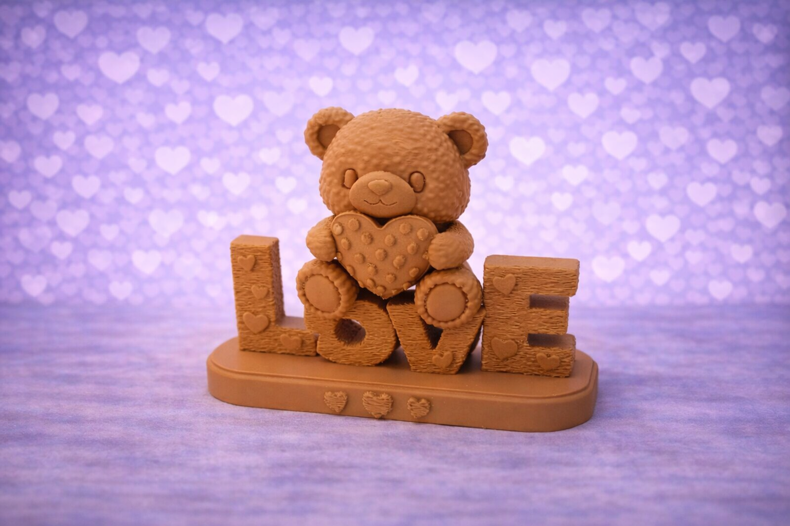 هاي القطعة بتجمع بين كلمة LOVE وتصميم دبدوب صغير يحمل قلب، بتفاصيل جميلة ولمسة دافئة تخليها مثالية كهدية رومانسية أو كديكور أنيق.
